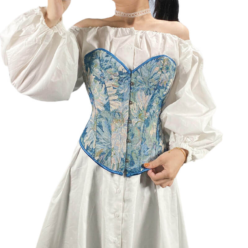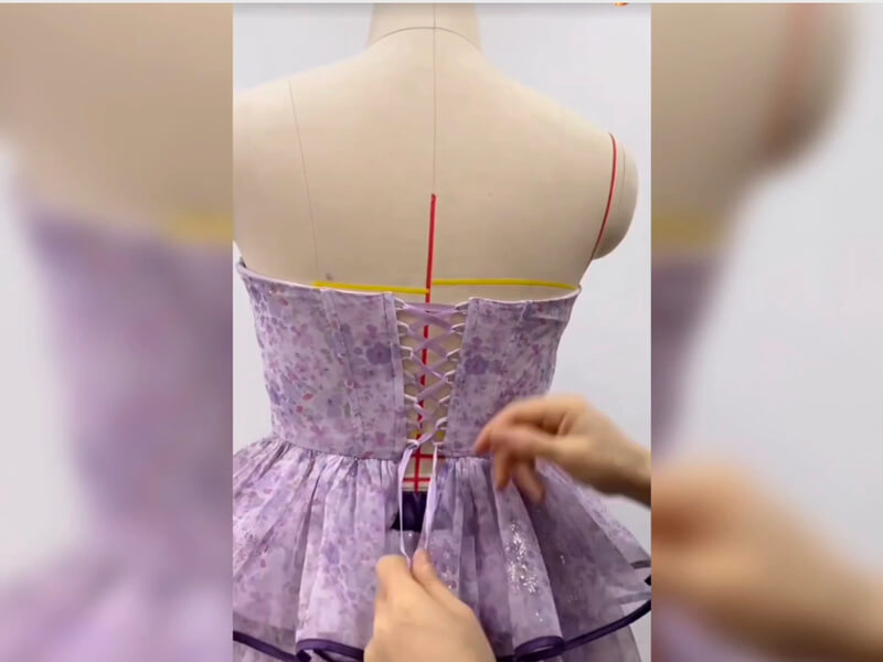 Finish the bottom edge of the corset by folding the fabric under and hemming it. You can also add lace trim or decorative elements as desired.
