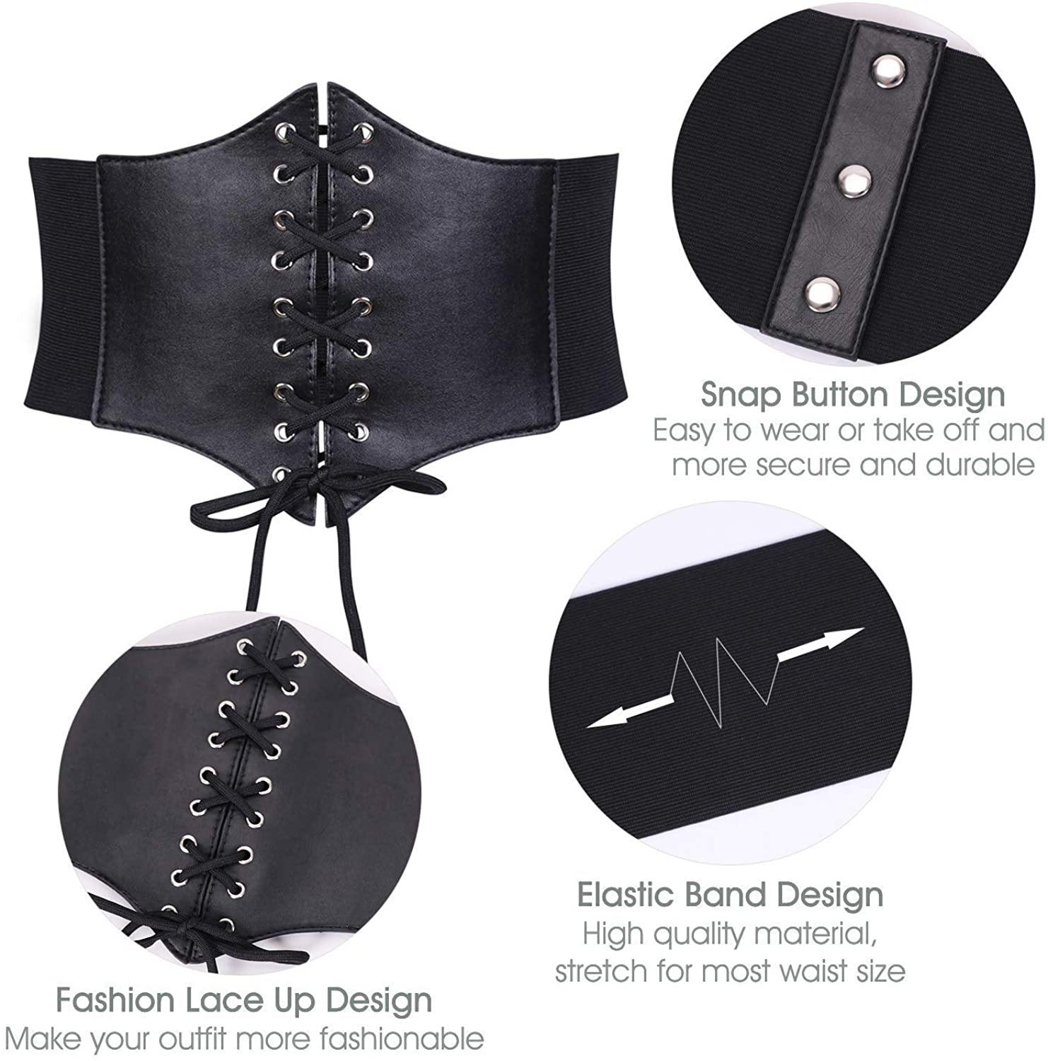 Fashion: Corsets are often worn as a fashion accessory or as part of a costume, particularly in subcultures like goth or steampunk. Modern corsets may be designed to be more comfortable and easier to move in than traditional corsets, making them more popular for fashion purposes. - Lace-Up Loose Elastic Band – The elastic band for women is made of polyester fiber and PU leather, which is comfortable and durable.