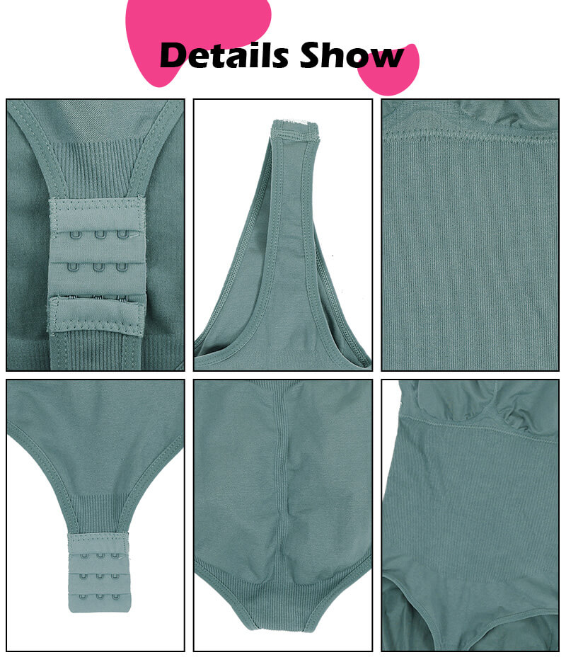 This Thong Shapewear Bodysuit features an elastic waist closure and 2 adjustable wide elastic straps that provide comfort and pressure relief. It also has a breathable soft material crotch and 3 rows of hook and eye closures for easy bathroom use. The buttock part is designed as a sexy thong to enhance natural curves, while the double layer stretchy fabric tightens and slims the tummy and back for a beautiful hourglass figure. The body shaper also provides 360 firm control to reduce waistline and hide bumps and bulges.