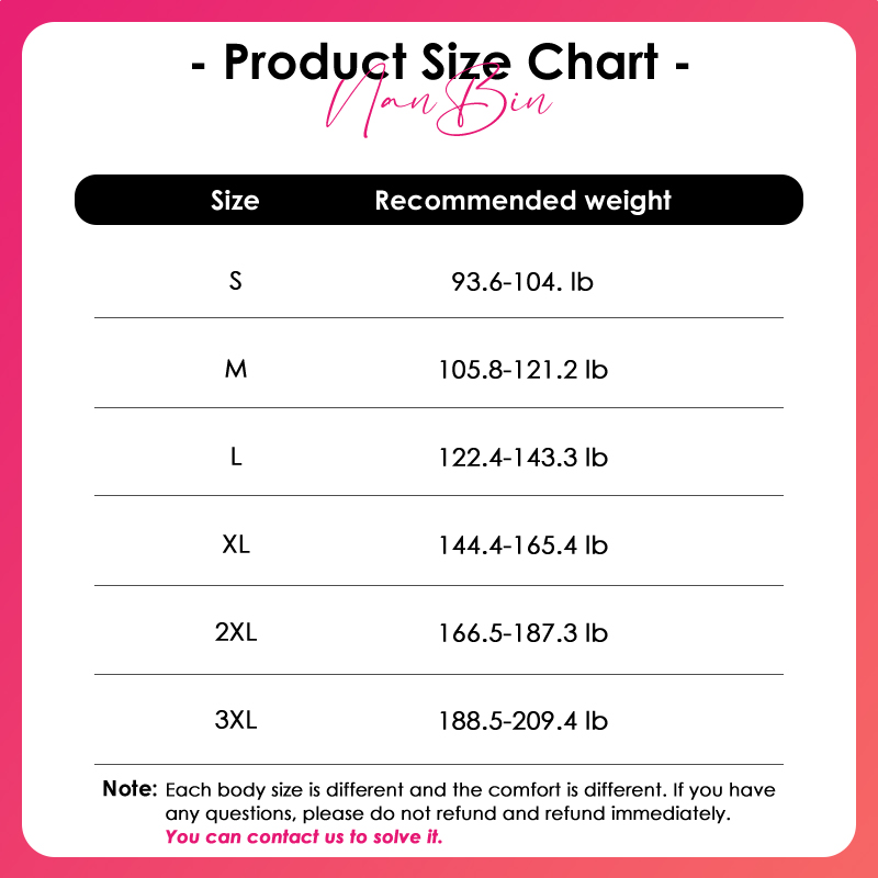 • Tummy Control Body Shaper size chart