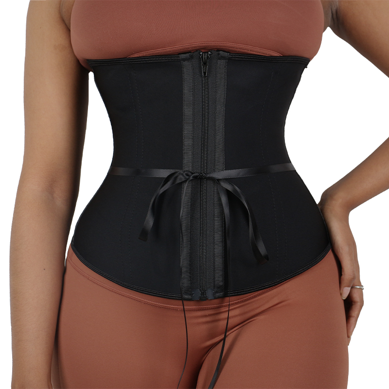 3.9 steel bones provide full pressure, sports waist protection, superimposed body shaping, and controllable body shaping. The zipper provides a firm fit, and the body shaping effect is better when combined with a bandage.